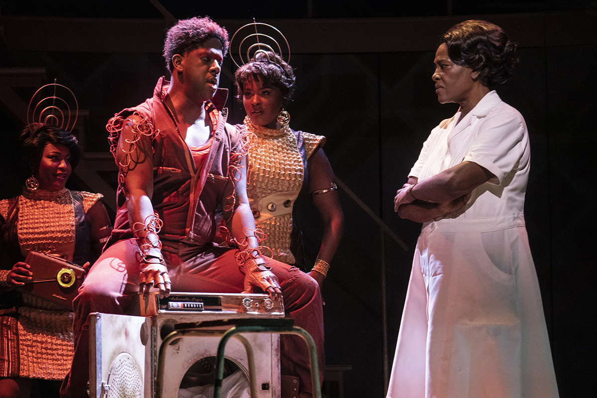 Clarke is riveting as the stoic maid, attempting to be the strong provider for her family, while challenged by the harsh climate of racism and repressive class structure prevalent in what was then called the Deep South. Kushner’s lyrics are raw, peppered with the idiomatic phrases and language of the Black working class. Tessori’s music is expressive with occasional dips into the popular repertoire, especially the blues-tinged Dryer (Kevin S. McAllister), whom Caroline calls “the Devil.’ as well as the Washing Machine (Arica Jackson) and the trio comprising the Radio (Nasia Thomas, Nya and Harper Miles).