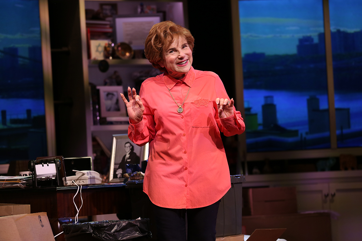 St. Germain’s one-act show allows Feldshuh the ease to tell Westheimer’s story in a non-linear fashion, as a good friend might confide with another. The set by Andrew Diaz is based on Westheimer’s actual apartment with a view of the Hudson and the George Washington Bridge behind her showing far off images of traffic crossing it (video design by Brian C. Staton).